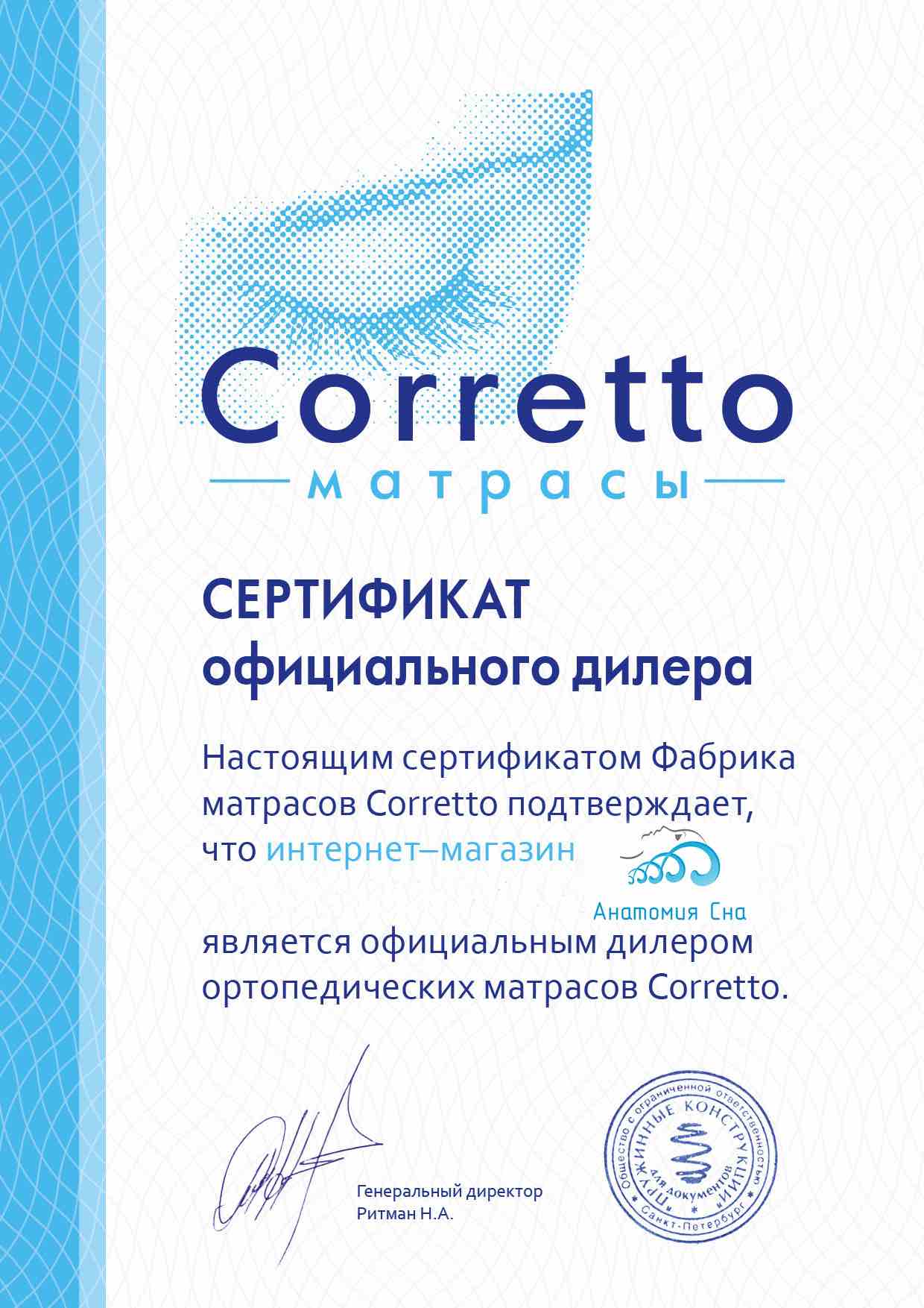 Сертификаты официального дилера